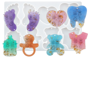 DM868 amor diente oso colgante resina epoxi molde para recuerdos bebé pie en forma de llavero aniversario pastel herramientas molde de silicona
